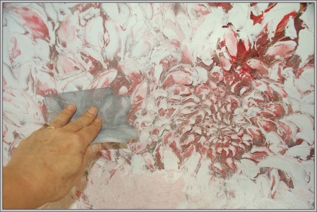 Thumbnails of drawing, painting, adding plaster petals, carving and sanding layers, then repeating the process: